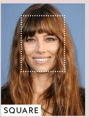 The faces length and width are almost identical. The chin is broad and angular. Cheekbones, jaw, and forehead are of equal width. The hairline is almost straight.